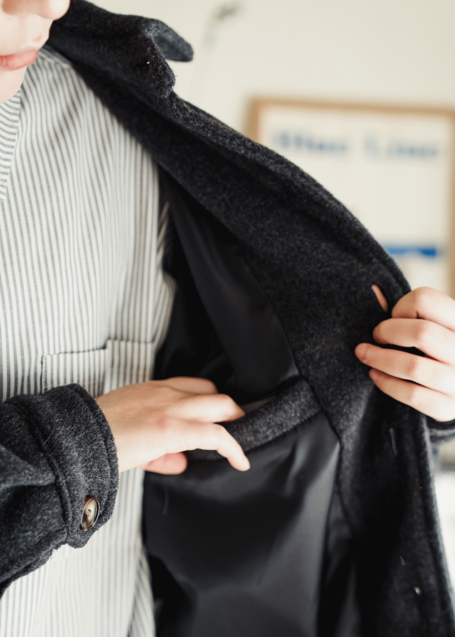 小版型毛呢西裝外套,修身但不貼身的剪裁