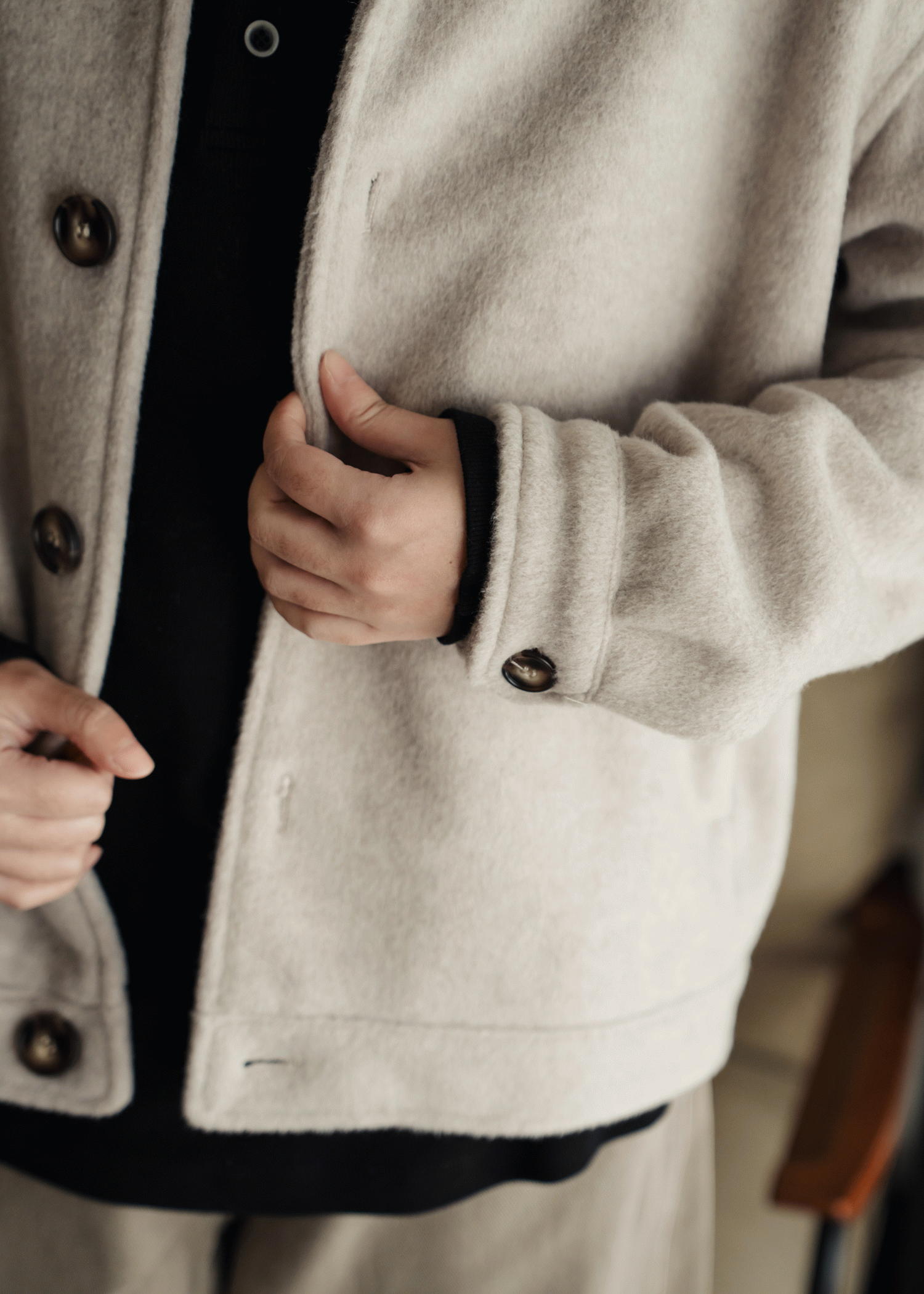 舒適毛呢觸感布料,手感柔軟,厚度剛剛好