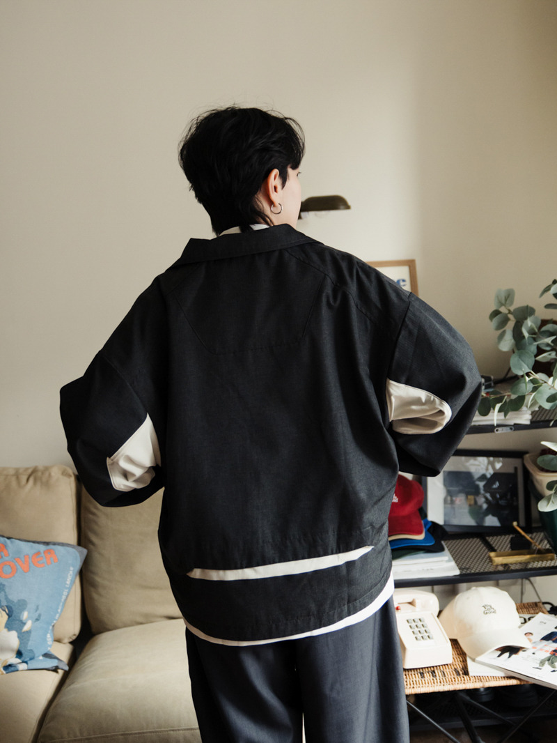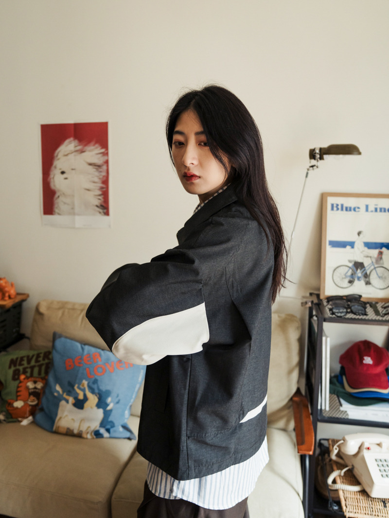背面與袖側也加入拼接細節