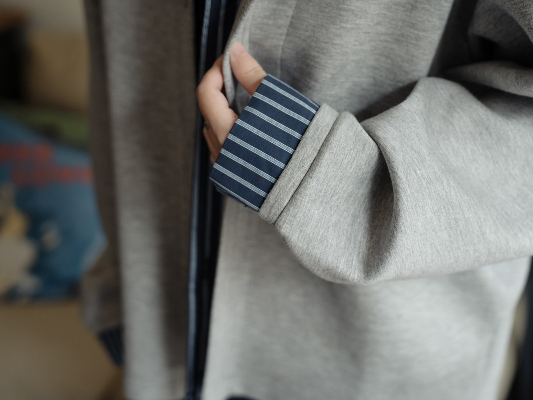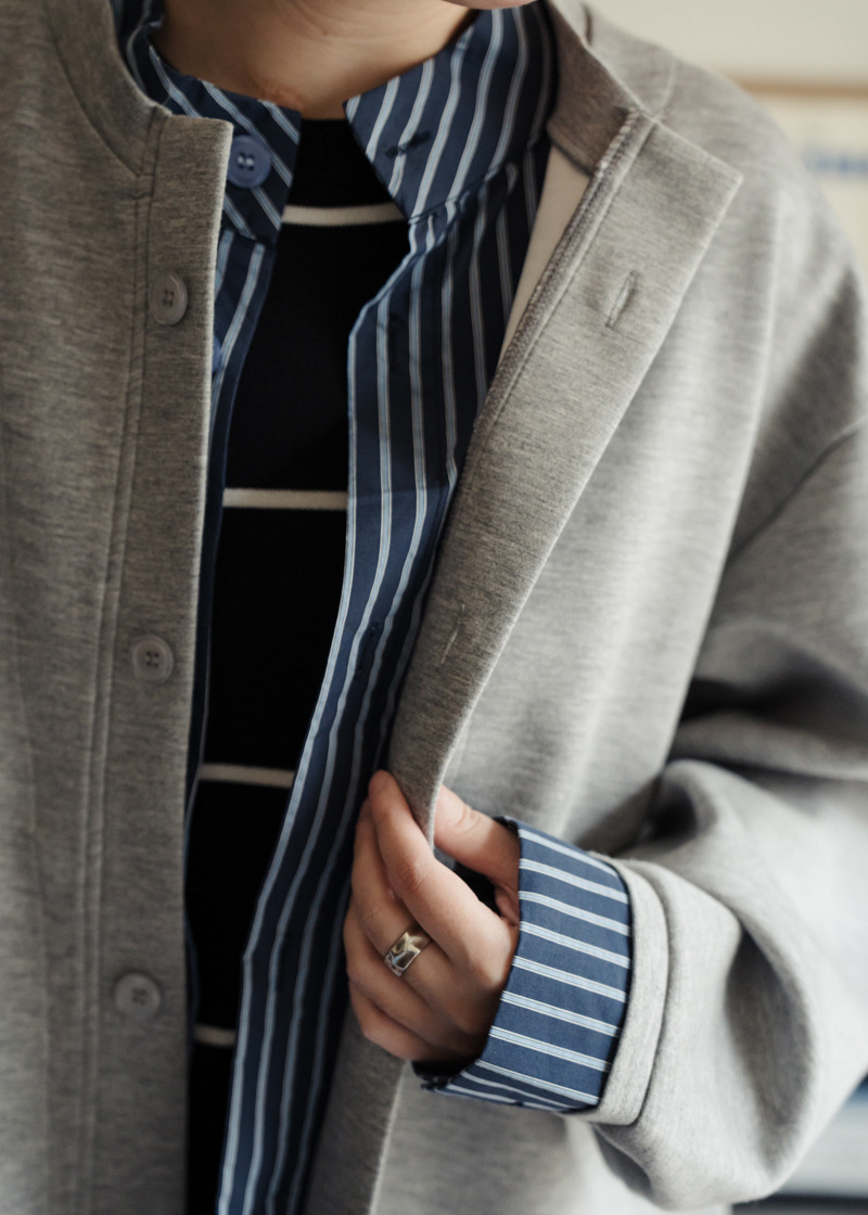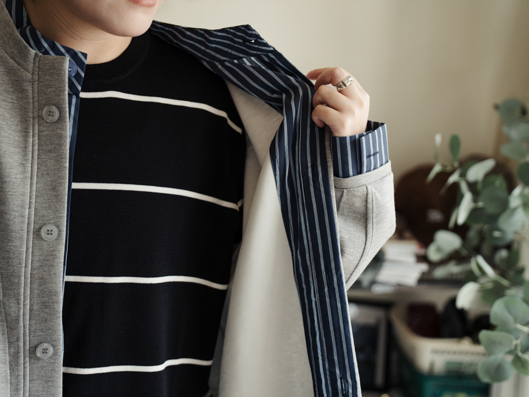 結合直紋襯衫式拼接設計