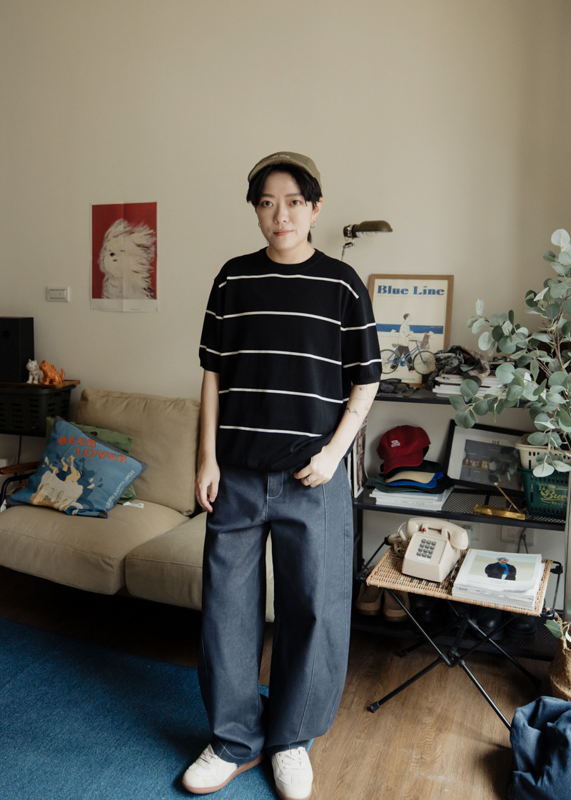 百搭深色丹寧,簡單配件t恤就好看