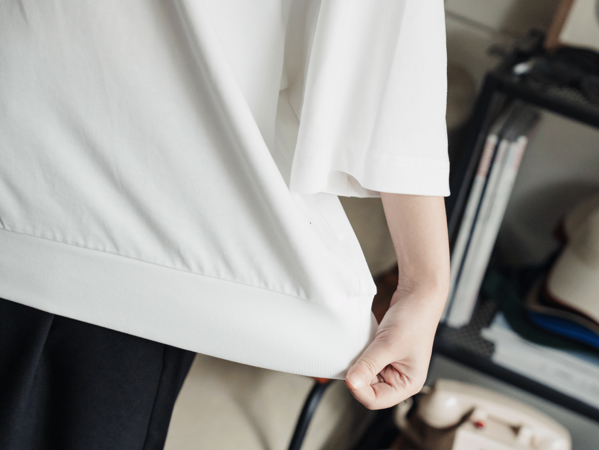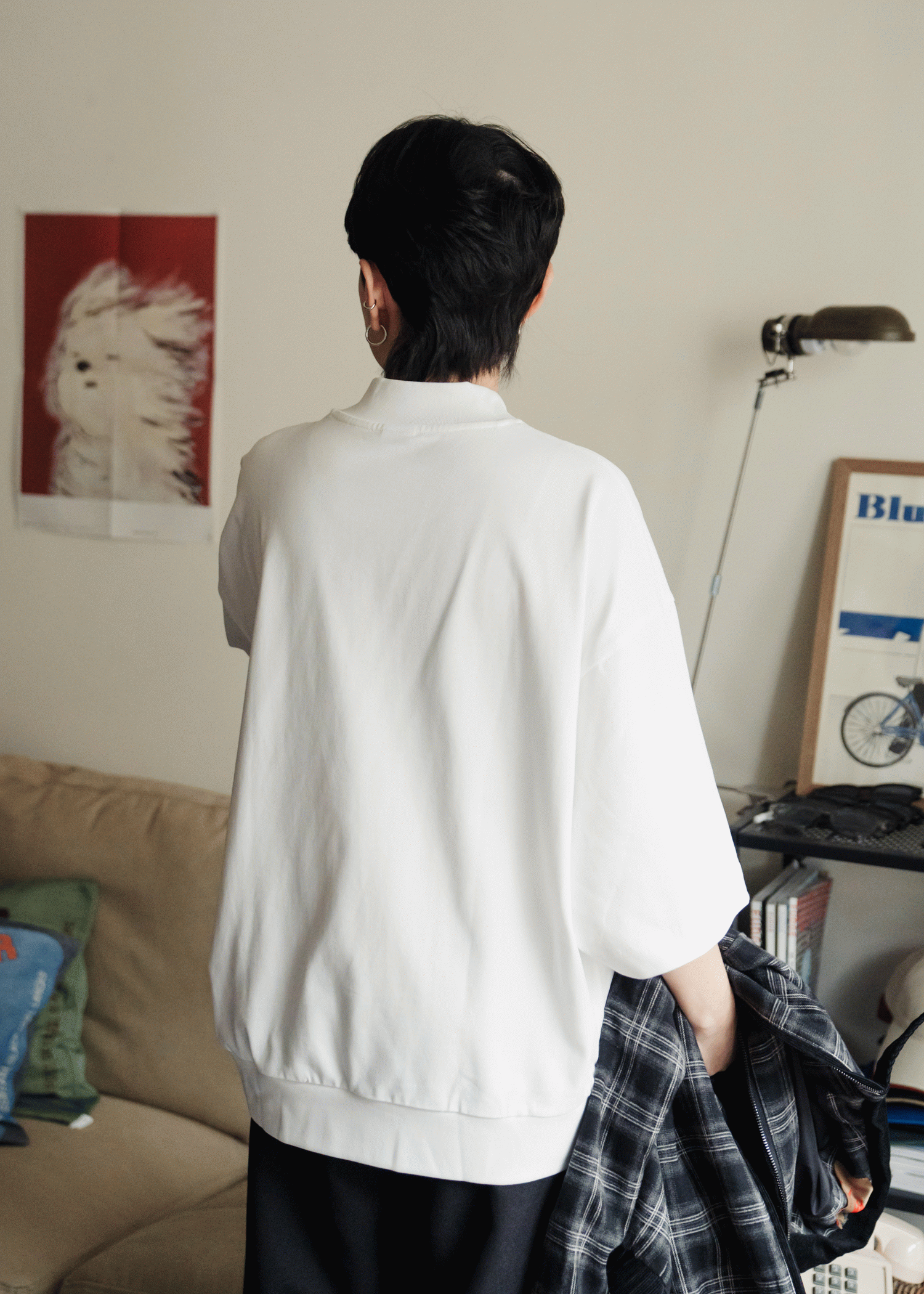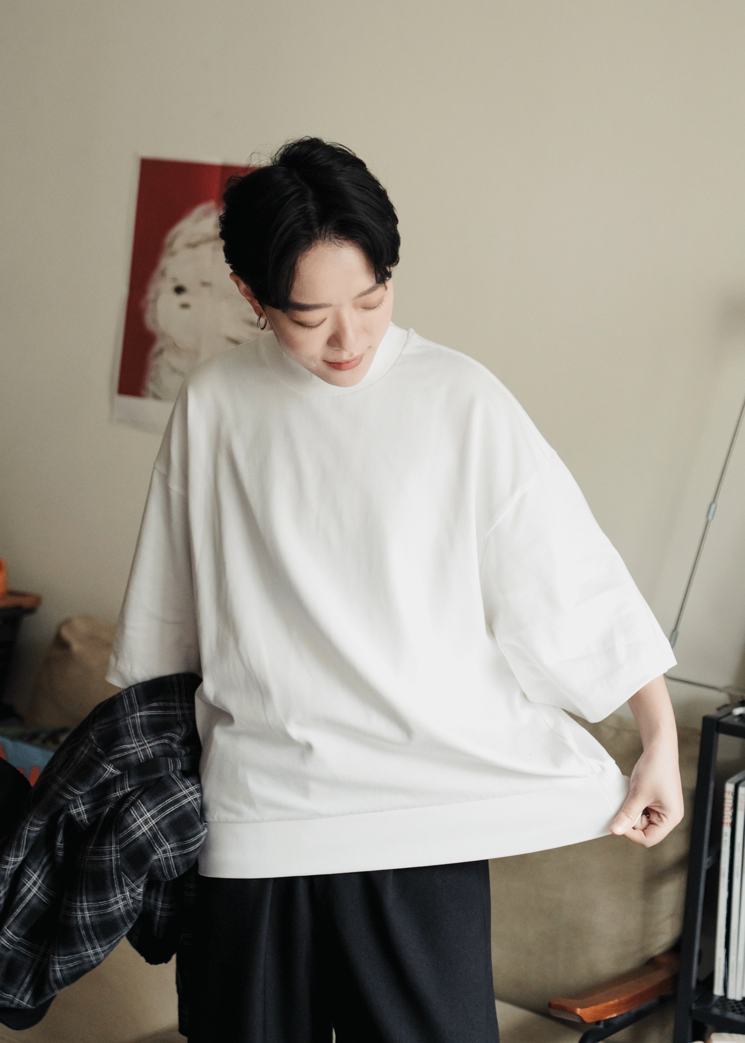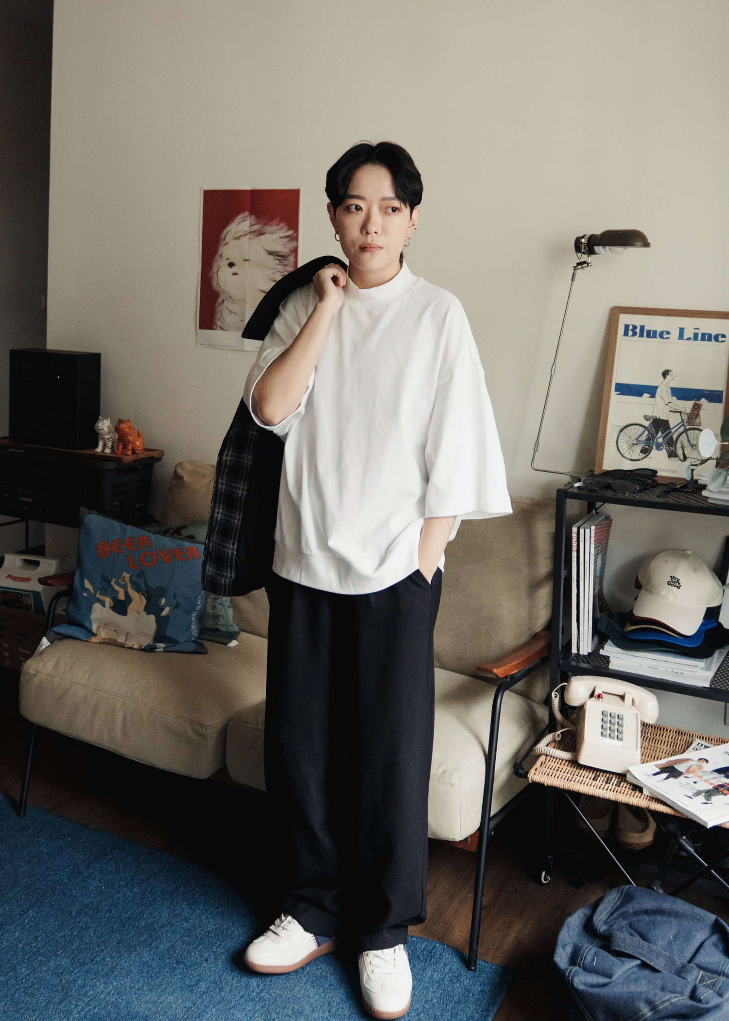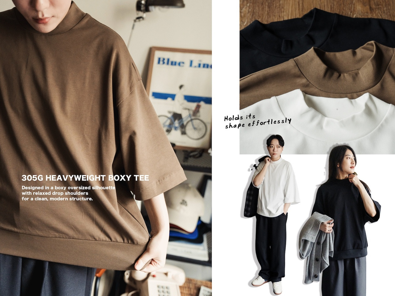 加上寬鬆落肩線條,讓整體輪廓更俐落!